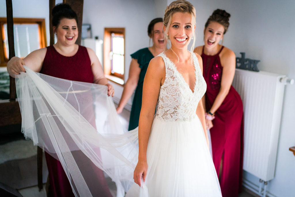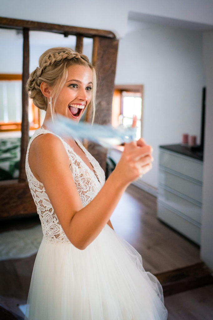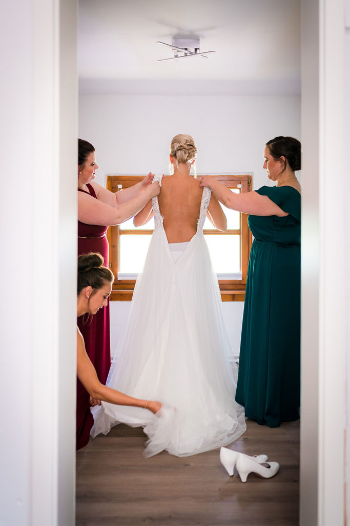 Morgens starteten wir, im liebevoll eingerichteten Eigenheim von Laura und Tobias, mit dem Getting Ready von Laura. Die Sonne strahlte, trotz des sehr wechselhaften Wetters diesen Sommer.