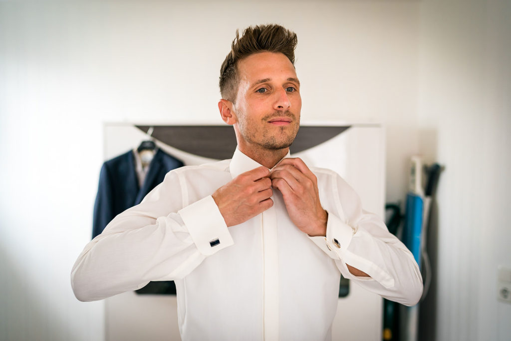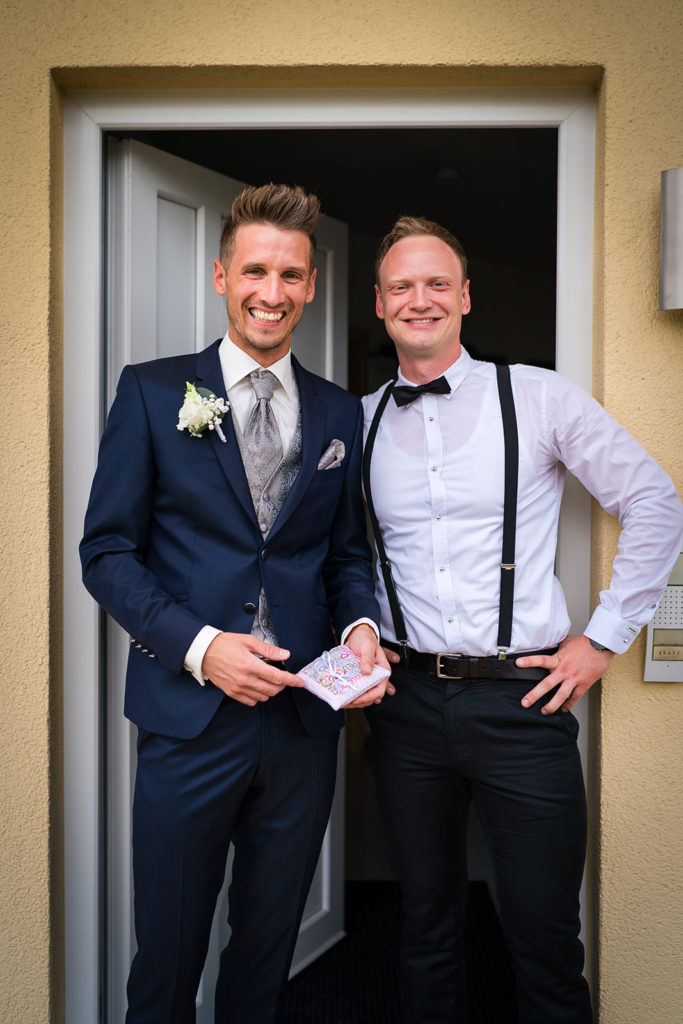 Anschließend fuhr ich zu Tobias. Er machte sich mit seinem Trauzeugen Daniel zusammen in dessen Elternhaus, nur wenige Minuten von Laura entfernt, fertig.