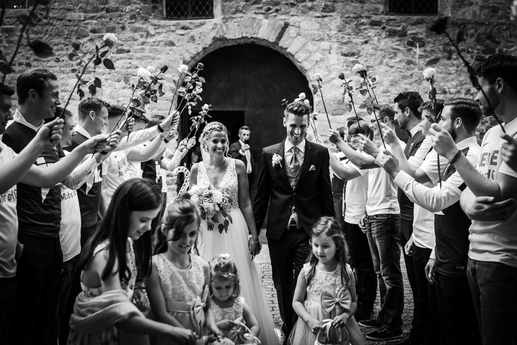 Vor dem Auszug aus der Kirche, machten sich einige Fussballkameraden schon auf, um die draußen wartenden Vereinskollegen im Spalier zu unterstützen.