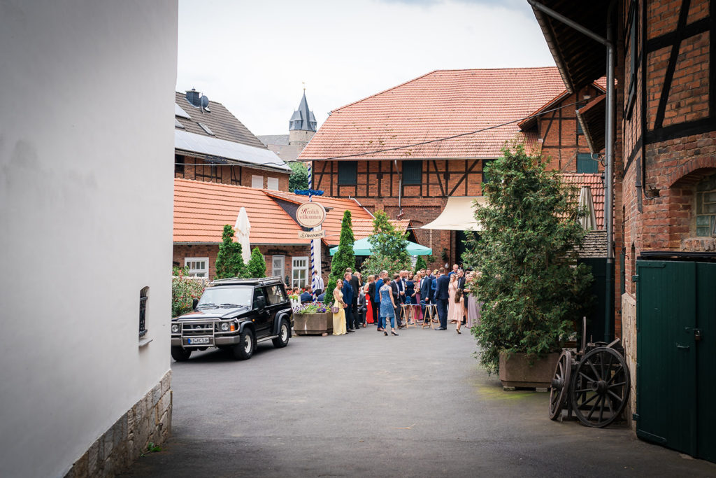 Die Hochzeitsgemeinschaft war voller Vorfreude und in bester Stimmung an der Kirche angekommen.