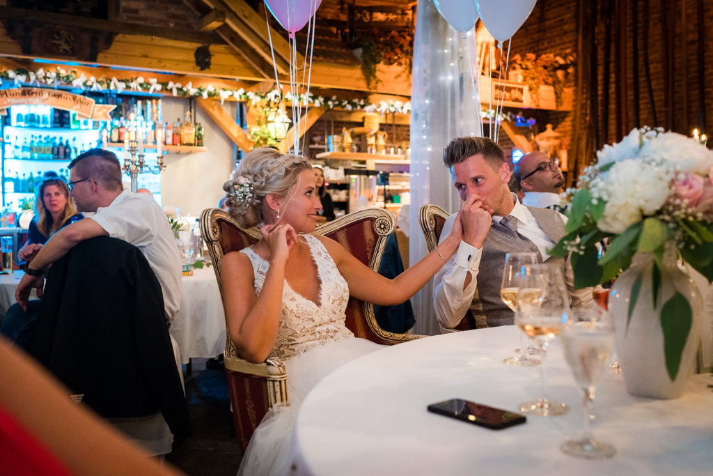 Die ersten Tränen kullerten bei Familie und Freunden. Während der Trauung streichelte Tobias aufgeregt Lauras Hand.